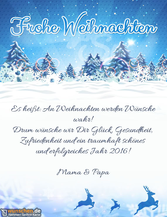 Zufriedenheit und ein traumhaft schönes und erfolgreiches Jahr 2016! Mama & Papa